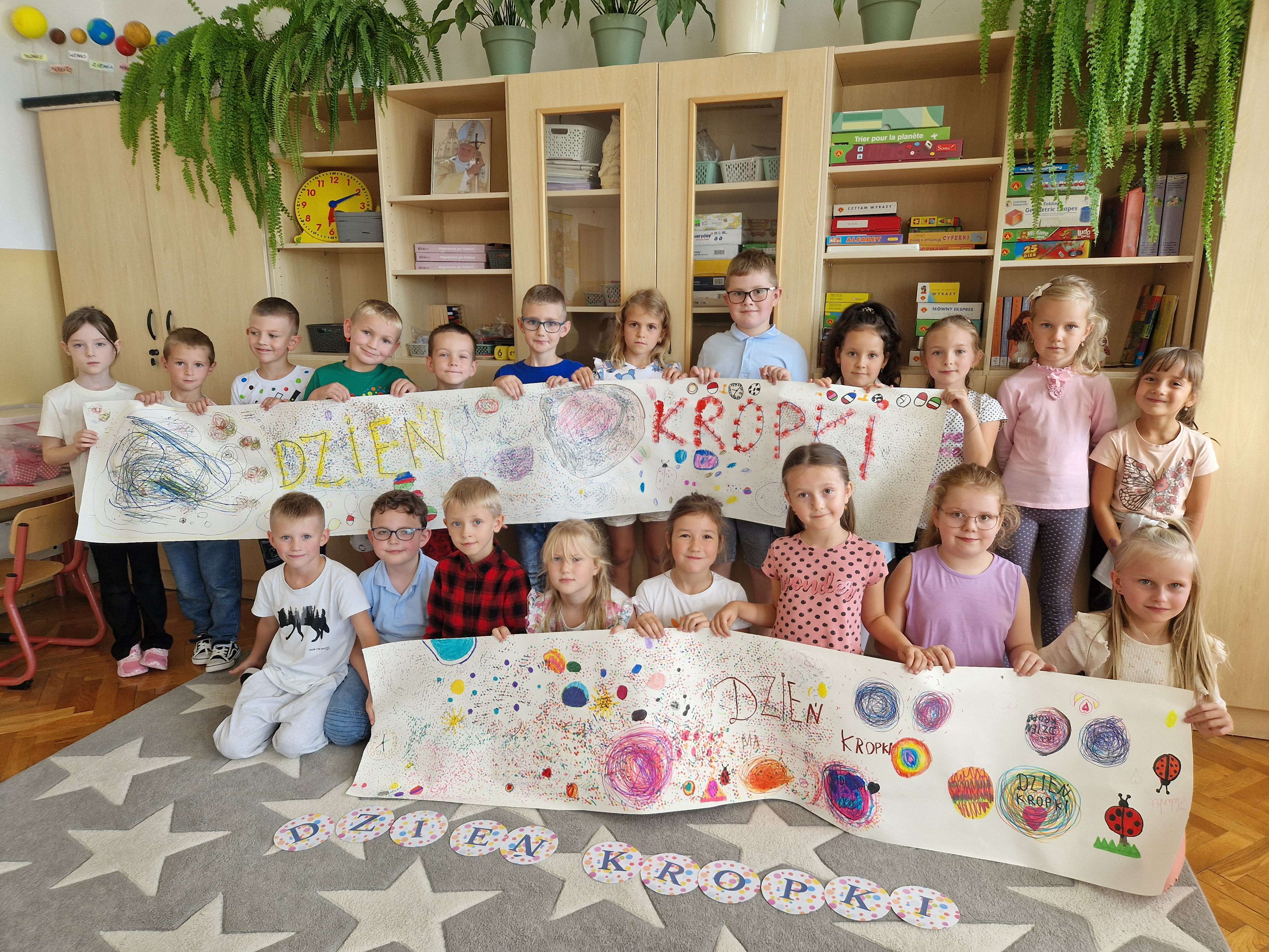 Dzieci tworzyły obrazki, wyklejały kropki z papieru, a także malowały swoje własne „kropkowe” dzieła. Podczas tego dnia uczniowie nie tylko bawili się i tworzyli, ale także dowiedzieli się, jak ważne jest wierzenie we własne możliwości i odkrywanie swoich talentów. Dzień Kropki to świetna okazja, aby rozwijać wyobraźnię, promować wytrwałość i cieszyć się wspólnym tworzeniem. To kolorowe i radosne święto na długo pozostanie w pamięci naszych uczniów, zachęcając ich do dalszej twórczej zabawy i odkrywania piękna w najprostszych rzeczach, takich jak kropeczka.