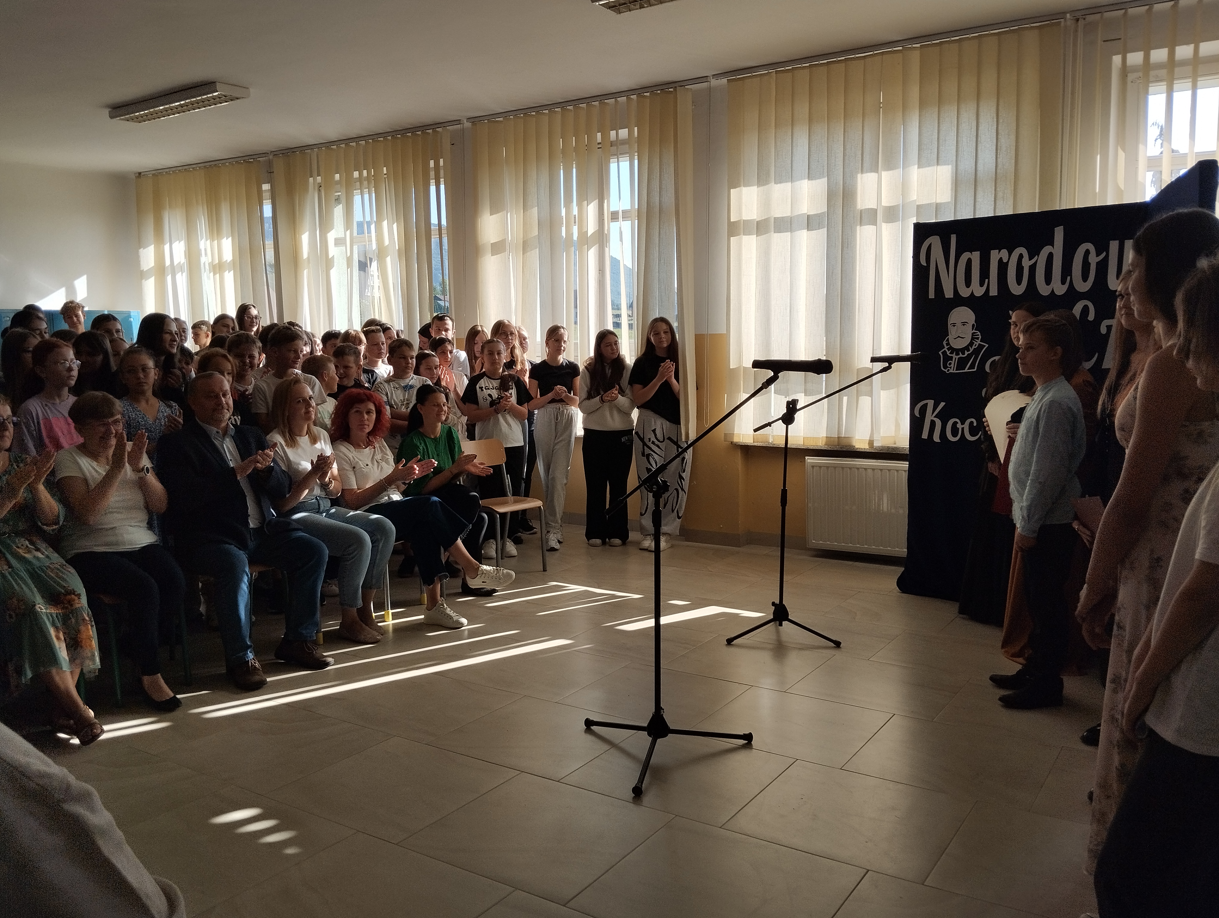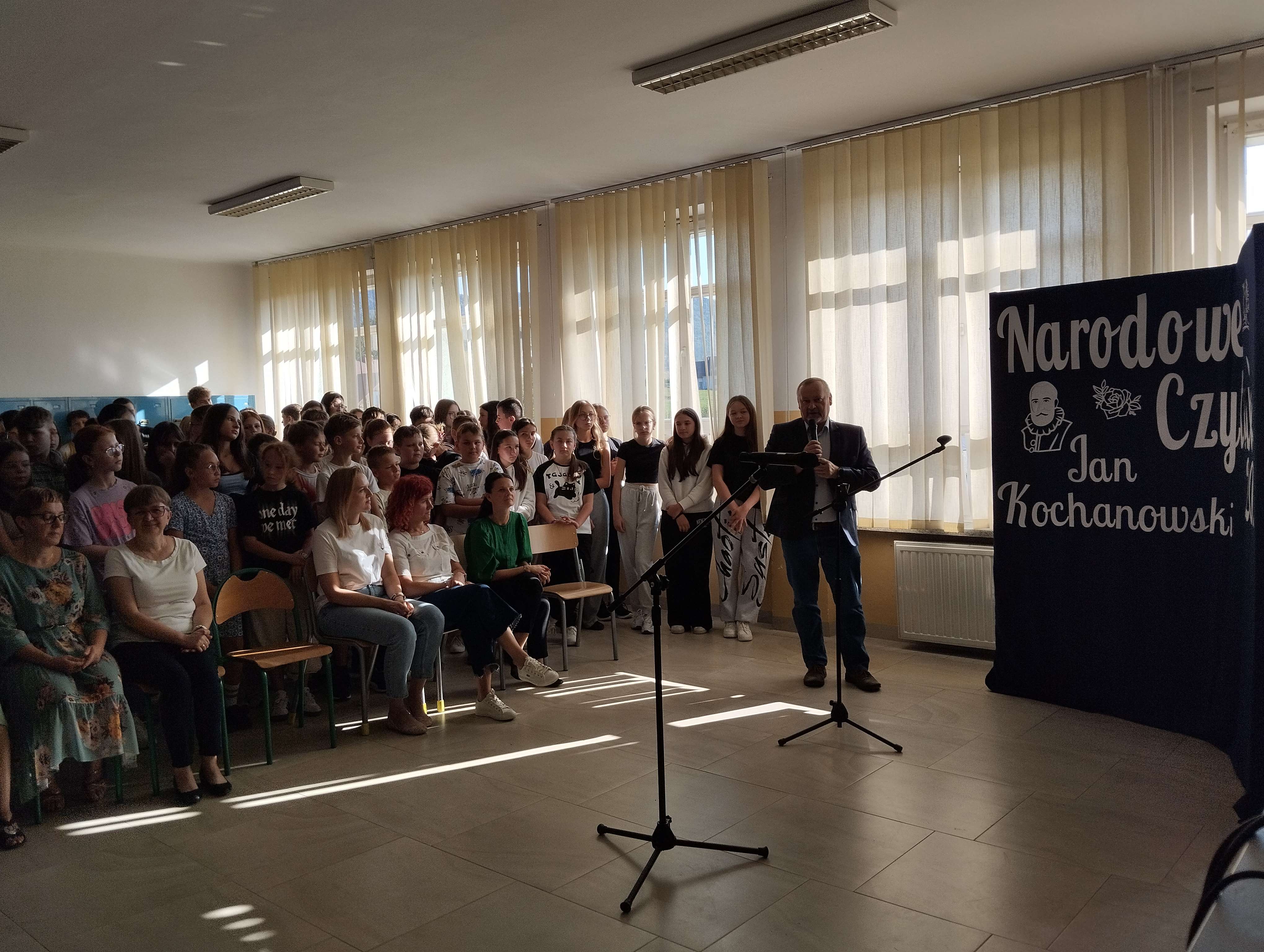6 września już po raz 14. odbyła się akcja wspólnego czytania, która od 2012 roku łączy Polaków nie tylko w kraju, ale i za granicą. Lekturą tegorocznej edycji Narodowego Czytania były poezje jednego z najwybitniejszych twórców europejskich epoki renesansu – Jana Kochanowskiego, który przyczynił się do rozwoju polskiego języka literackiego, a jego niezrównane dzieła do dziś pozostają żywe. Nasza szkoła, jak co roku, włączyła się w czytanie dzieł Jana z Czarnolasu. Uczniowie klasy ósmej pod okiem wychowawczyni pani Katarzyny Wójtowicz – Kaptur we współpracy z biblioteką szkolną przygotowali krótki montaż słowno-muzyczny, przedstawiając społeczności szkolnej kilka fraszek oraz jeden z trenów tego wielkiego poety. Jak wiemy, twórczość Jana Kochanowskiego porusza różnorodne tematy – od poważnych i doniosłych, po lżejsze i żartobliwe. Opisuje życie dworskie i ziemiańskie, pojawiają się w niej wątki patriotyczne, refleksje moralne, a także liczne nawiązania antyczne i biblijne. Uczniowie zaprezentowali takie teksty, w których odnajdziemy humanistyczne wartości, zachwyt życiem, ale też głęboką zadumę nad przemijaniem i ludzkim losem.