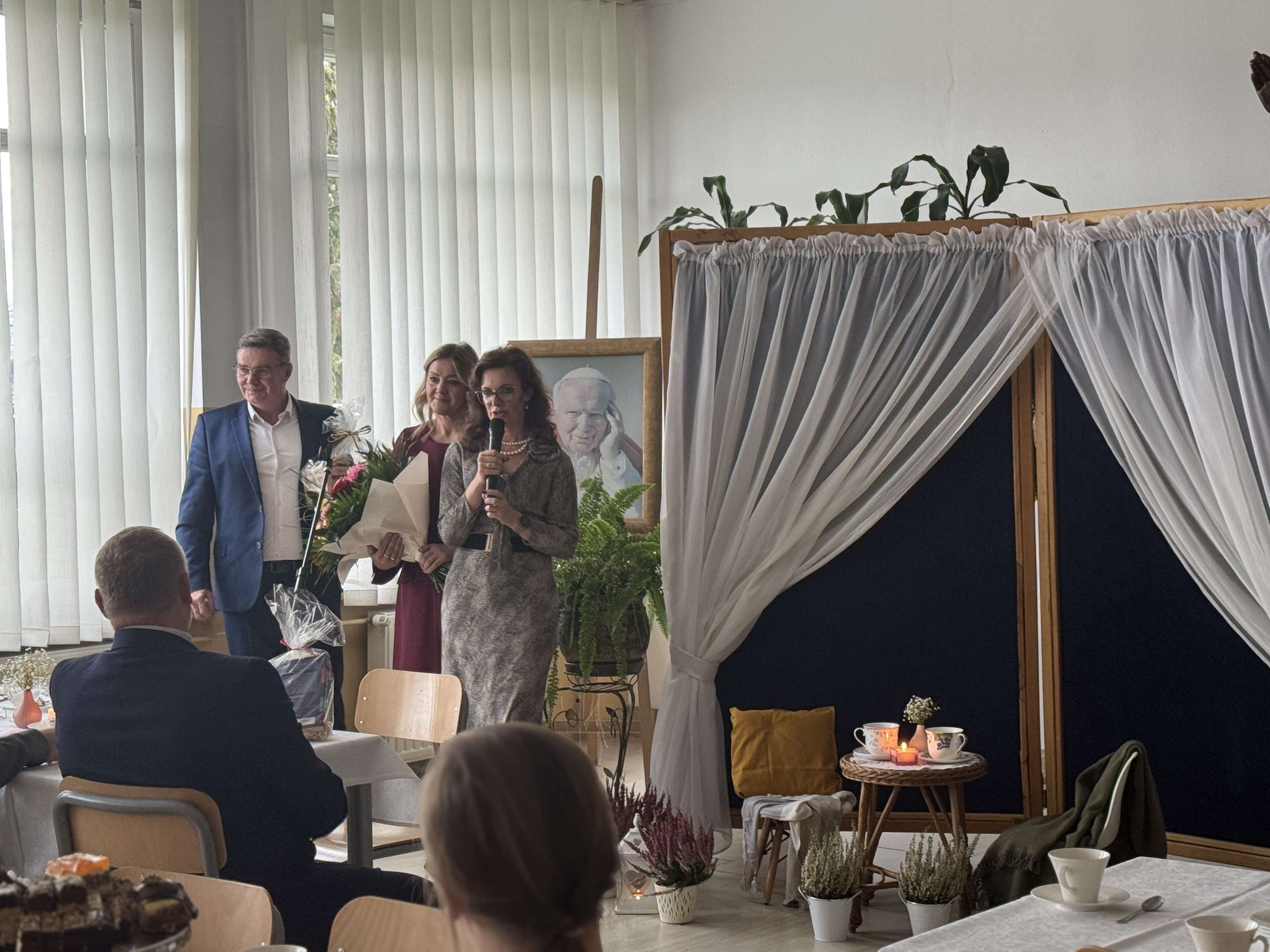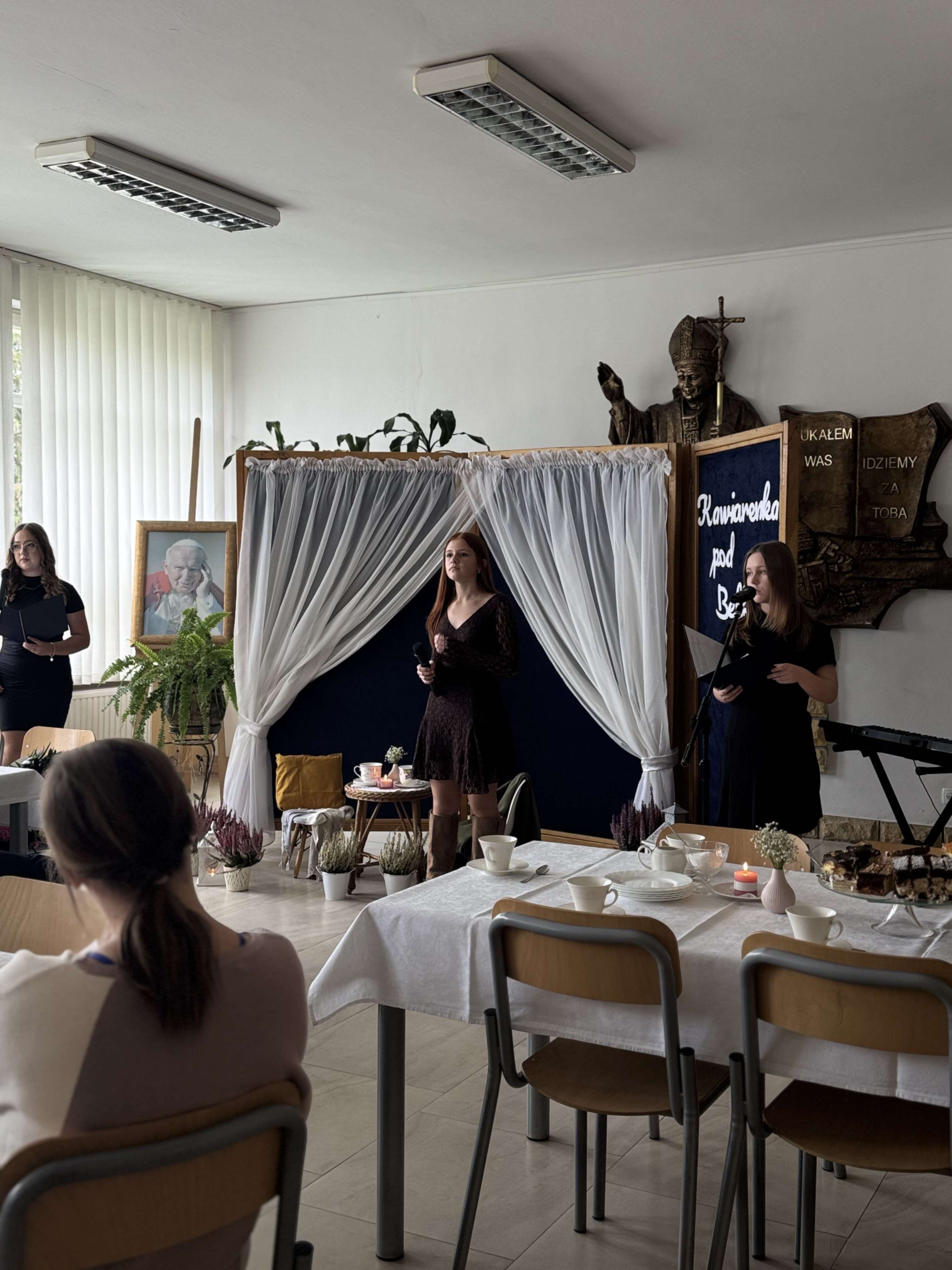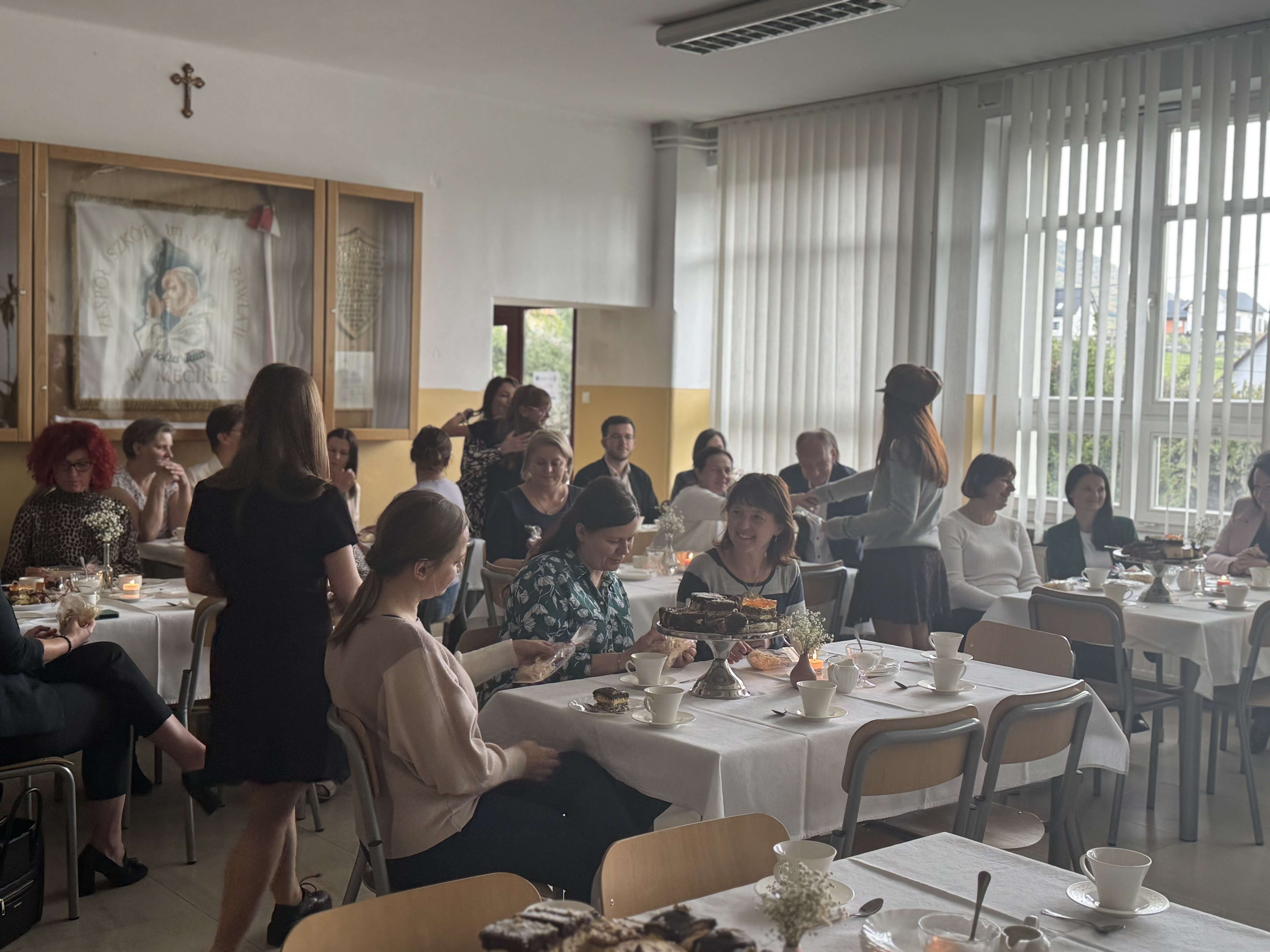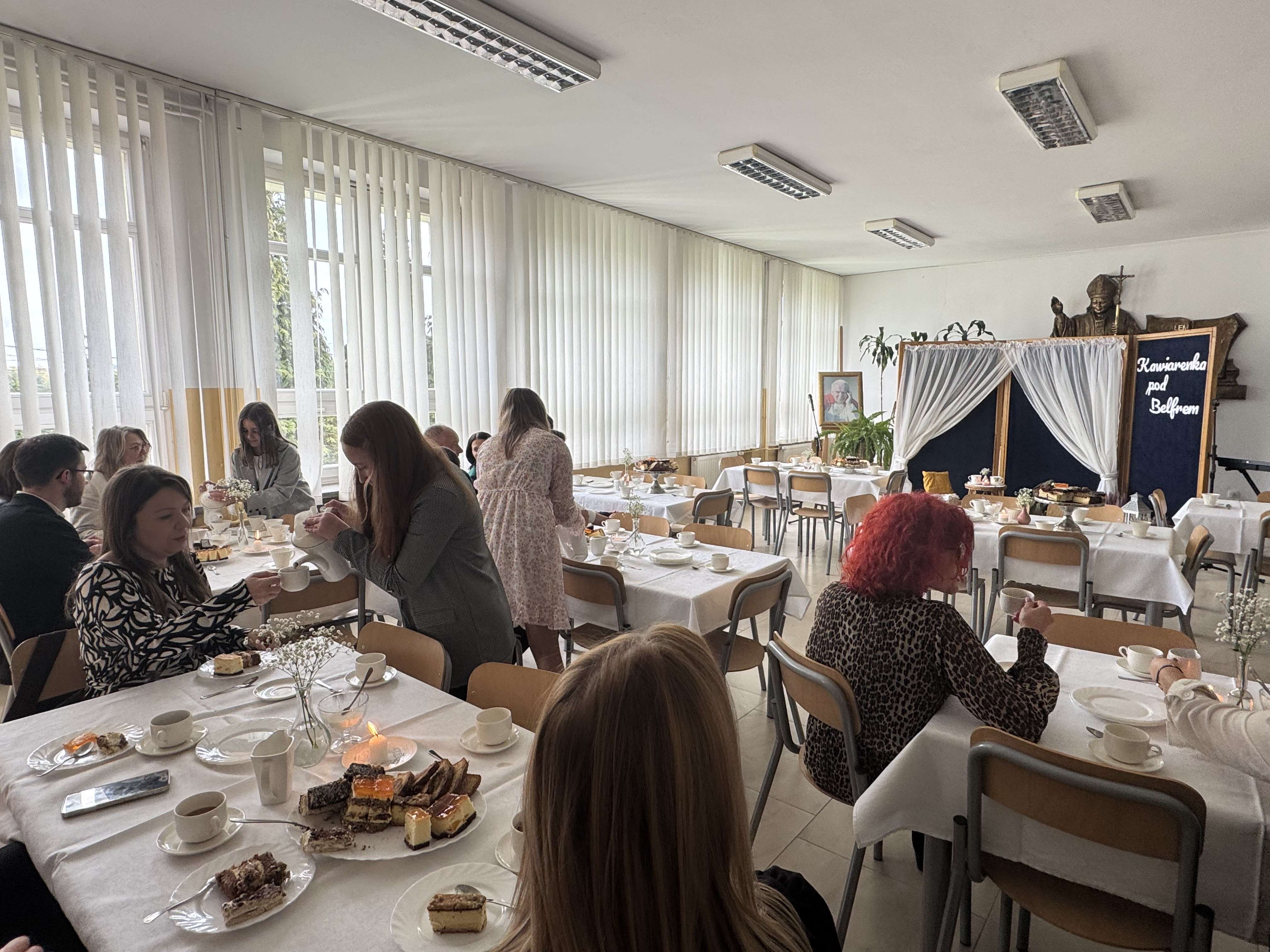 Święto Edukacji Narodowej obchodzone było w naszej szkole nietypowo. Nauczyciele zostali bowiem zaproszeni do kawiarenki, w którą na ten czas zamienił się szkolny hol. Metamorfoza wnętrza miała swój urok i udało się w ten sposób stworzyć atmosferę klimatycznego miejsca z duszą. Zamierzenie było takie, aby zaproszeni pedagodzy w tym dniu oderwali się od codzienności, a po szkolnych korytarzach, zamiast codziennego szkolnego gwaru, niosła się muzyka.