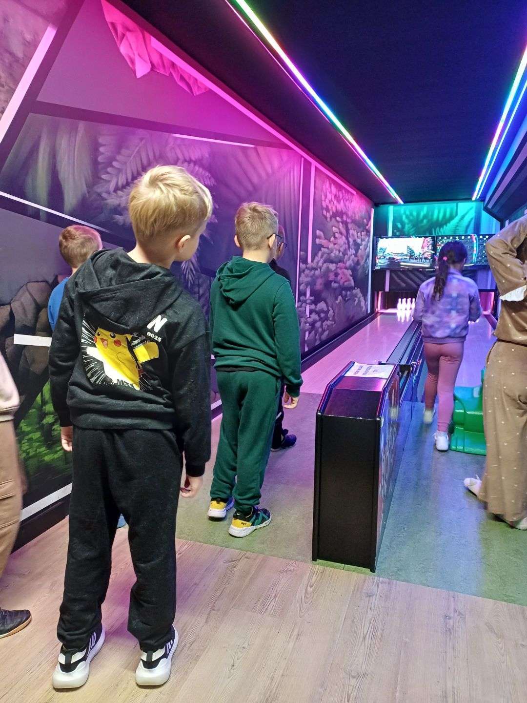 Po zajęciach przyszedł czas na relaks oraz zabawę. Uczniowie uczestniczyli w zajęciach plastycznych oraz zabawach ruchowych z animatorami. Po zmaganiach na hali sportowej drugoklasiści mogli skorzystać z sali gier i zabaw, gdzie czekały na nich kręgle, air hockey oraz tenis stołowy. Po zjedzeniu smacznego obiadu, pełni energii i nowych wrażeń wszyscy szczęśliwie wrócili do domu.