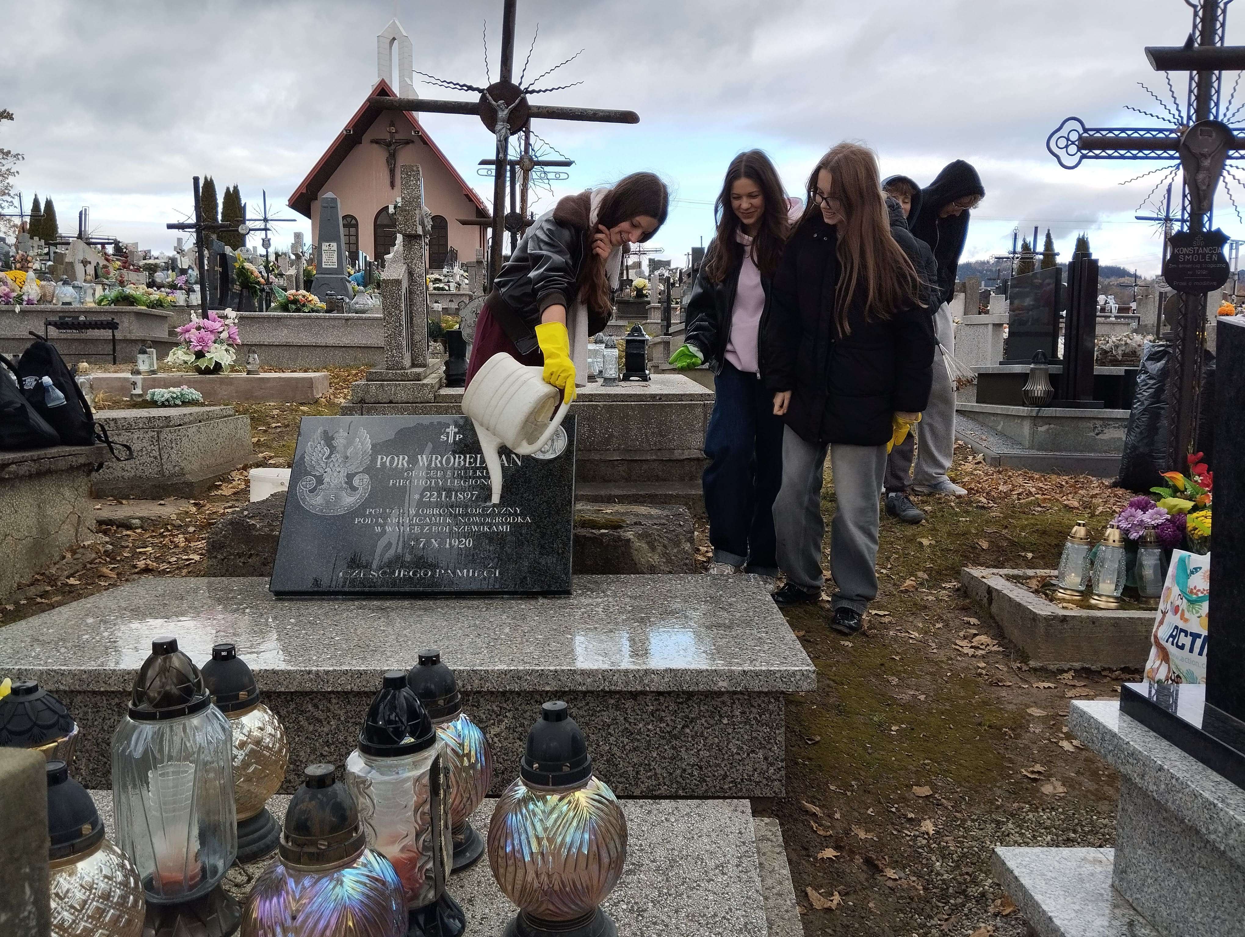 Uczniowie naszej szkoły wraz z wychowawcami, jak co roku przed 1. listopada, uporządkowali w tym czasie groby byłych nauczycieli i zapalili znicze w ramach akcji „Szkoła pamięta”. Szkolni wolontariusze zadbali także o grób porucznika Jana Wróbla, a11.listopada spotkali się przy jego mogile wraz z dyrekcją szkoły, mieszkańcami oraz przedstawicielami władz samorządowych. W ten sposób oddali hołd poległemu i wszystkim, którzy zginęli, walcząc o wolną Polskę.