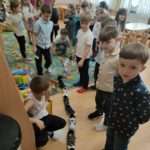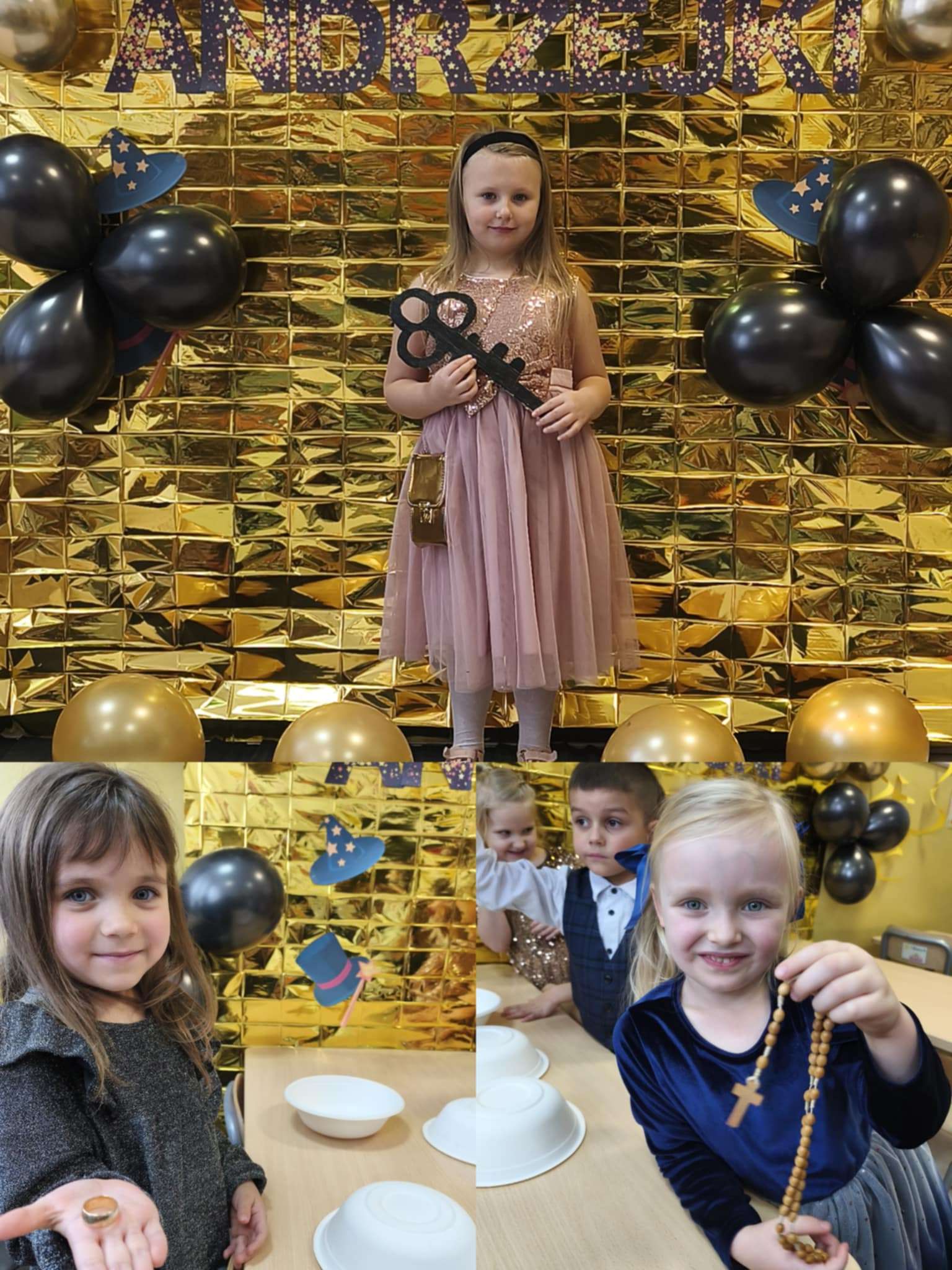 W oddziałach przedszkolnych co roku podtrzymujemy tradycje związane z „andrzejkami”. Temu wydarzeniu towarzyszyły tańce, zabawy i wróżby andrzejkowe. Nie zabrakło tradycyjnego ustawiania „bucików”, „losowania rekwizytów”, „sprawdzania swoich przyszłych zawodów” oraz innych wróżb związanych z tym świętem. Przedszkolaki z uśmiechem na twarzy chętnie brały udział w magicznym rytuale andrzejkowym. Po zakończonych wróżbach i zabawach dzieci skosztowały przygotowane przez rodziców smakołyki.