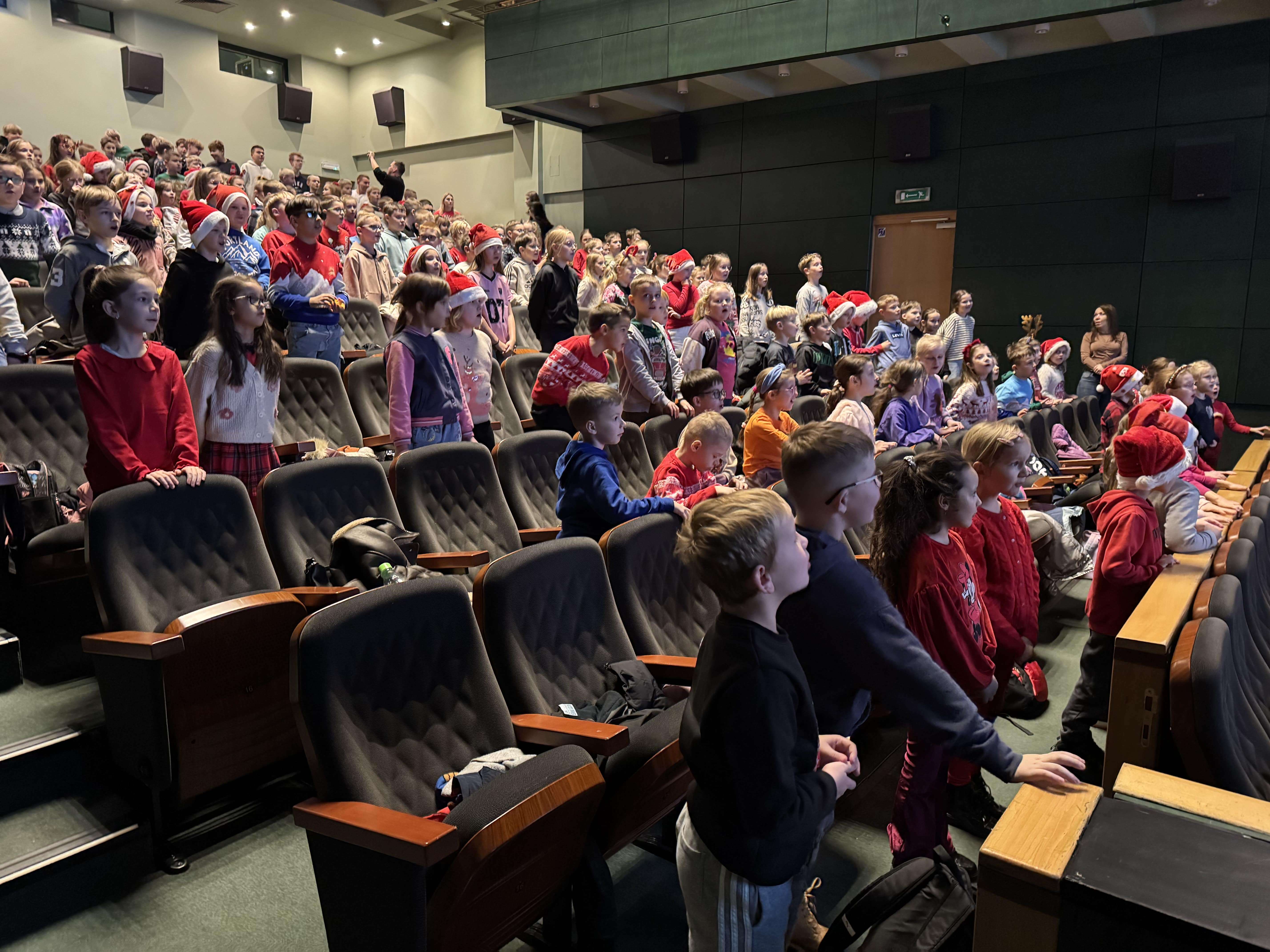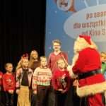 Nie zabrakło także krótkich animacji prowadzonych na scenie, podczas których kilkoro uczniów mogło aktywnie wziąć udział w zabawach. Odgadywanie zagadek, wspólne tańce czy świąteczne mini-konkursy wprowadziły wszystkich w radosny, mikołajkowy nastrój. Po zabawach przyszedł czas na długo wyczekiwany seans. Na dużym ekranie pojawił się film pt. „Zwierzogród 2”. Dzieci z zainteresowaniem śledziły dalsze losy ulubionych bohaterów, a sala co chwilę wypełniała się śmiechem i emocjami.