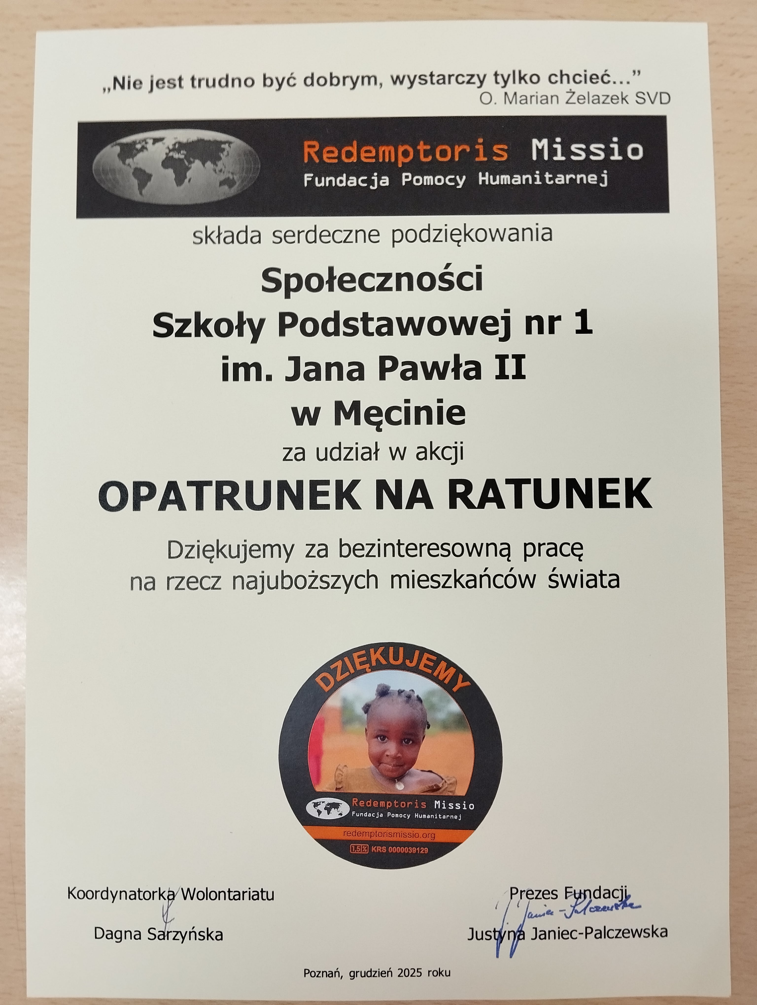 Kiermasz świąteczny, który stał się już naszą tradycją, jak zawsze zgromadził całą społeczność naszej szkoły. Doświadczenie pokazuje, że czas kiermaszów świątecznych przynosi dużo radości, zabawy dla nas wszystkich. Decyzją dyrektora szkoły, po konsultacji z opiekunami samorządu uczniowskiego, wolontariatu i wychowawców, zebrane środki zostały podzielone na wsparcie naszego, przewlekle chorego, ucznia oraz na pomoc Jagódce, którą wspiera Szkoła Podstawowa nr 2 w Męcinie. W tym szczególnym czasie społeczność naszej szkoły otrzymała serdeczne podziękowania od Fundacji Pomocy Humanitarnej Redemptoris Missio za udział w akcji Opatrunek na ratunek, za „bezinteresowną pracę na rzecz najuboższych mieszkańców świata”. Zbiórkę zorganizowało Szkolne Koło Wolontariatu. Wszystkim zaangażowanym w działania bardzo dziękujemy. Najważniejsze nie jest to, co pod choinką, ale kto zbiera się wokół niej, a więc Wszystkim składamy życzenia radosnych, spokojnych i ciepłych Świąt Bożego Narodzenia oraz wielu sukcesów i szczęśliwych chwil w nadchodzącym Nowym Roku.