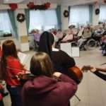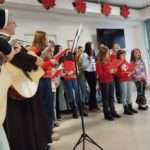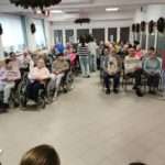 29 grudnia wolontariusze wraz z opiekunami oraz schola, działająca przy parafii w Męcinie, pod batutą siostry Iwony zagrała minikoncert kolęd dla mieszkańców DPS. Można śmiało powiedzieć, że tym razem w wizycie wzięli udział przedstawiciele dzieci i młodzieży całej Męciny, bowiem członkami scholi parafialnej są uczniowie obu męcińskich szkół. Starym zwyczajem wolontariusze złożyli najlepsze życzenia na nadchodzący Nowy Rok mieszkańcom i pracownikom DPS oraz przekazali każdemu słodki upominek w postaci domowych pierników i ciasteczek.