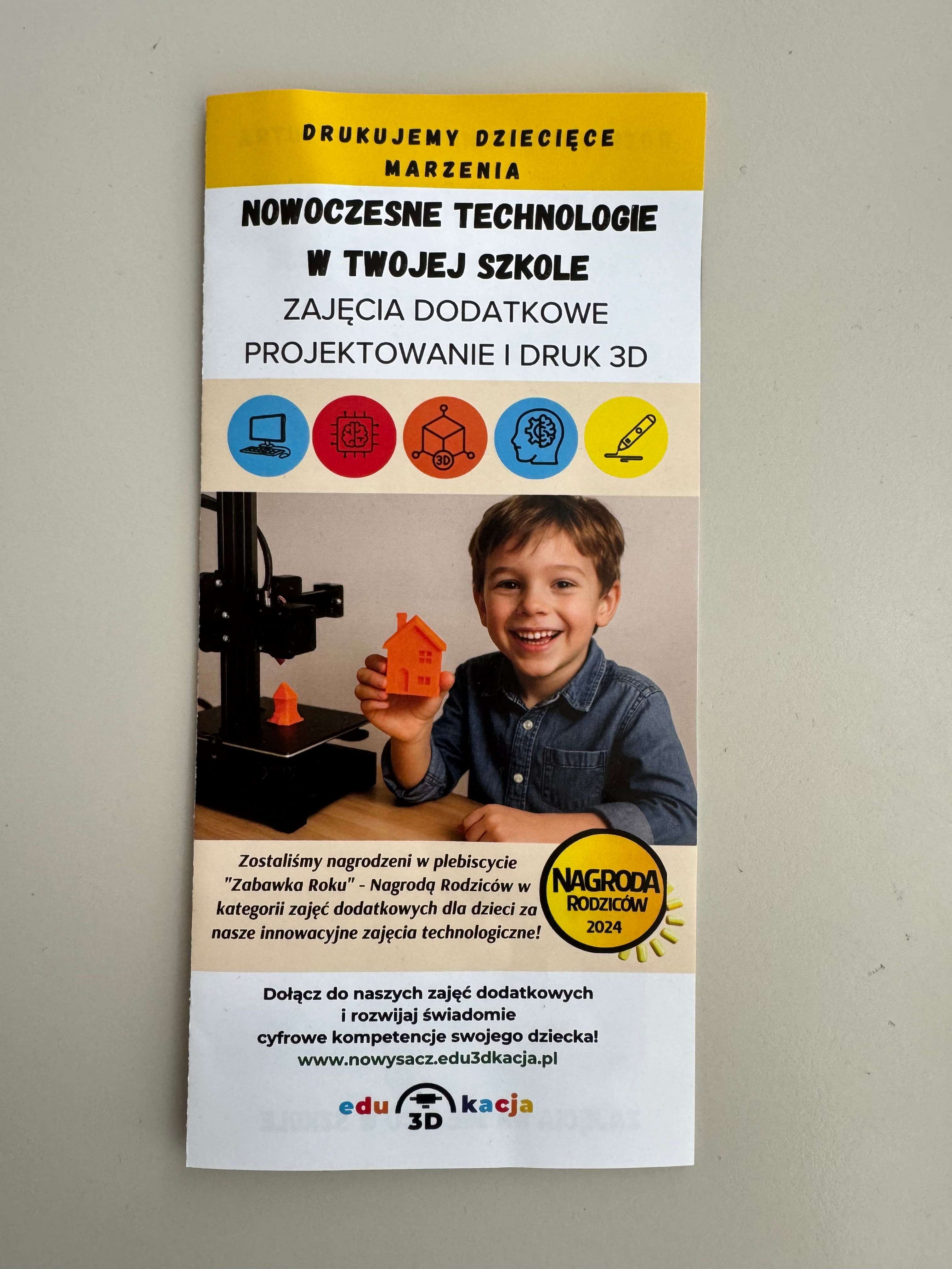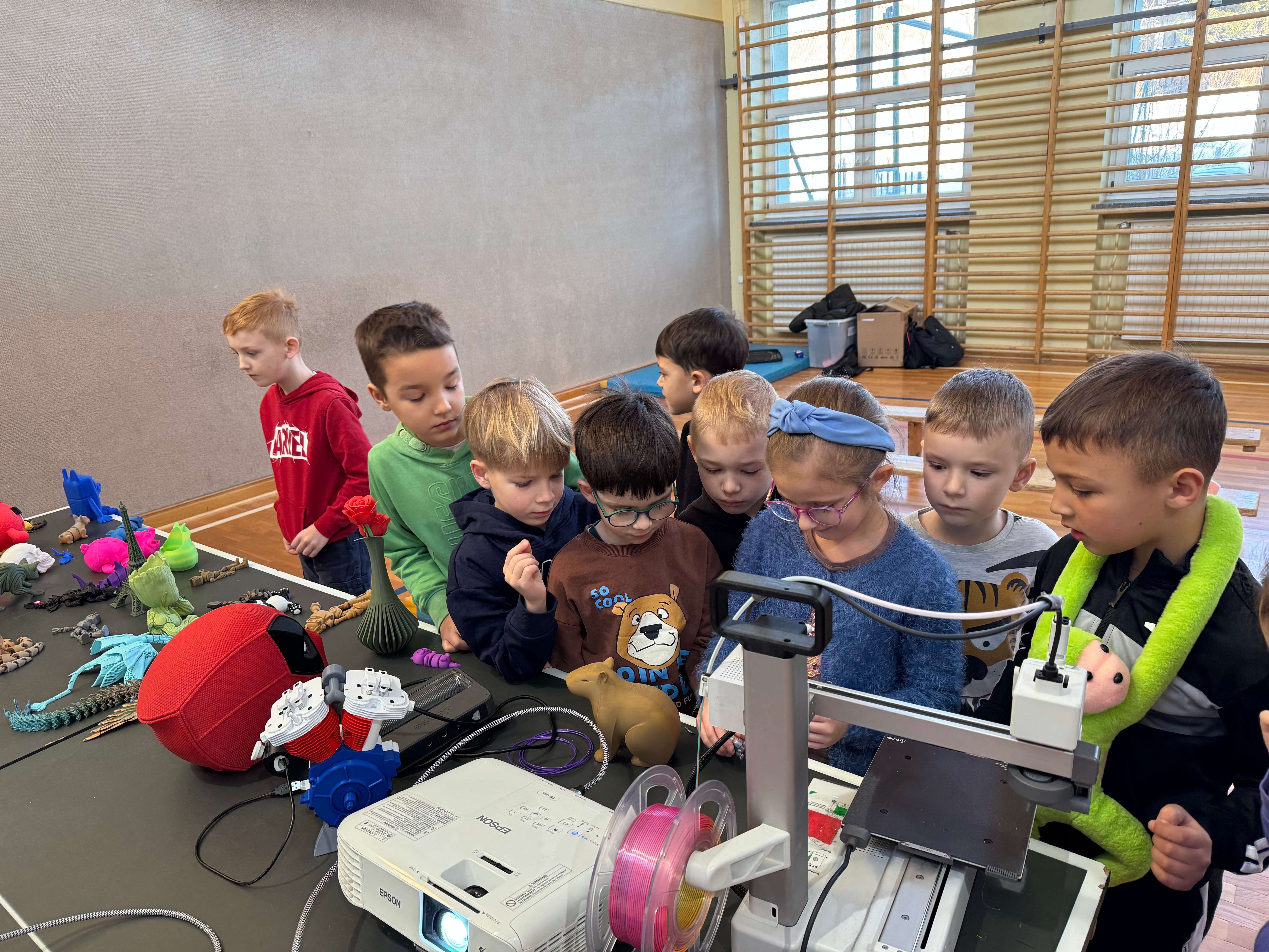W naszej szkole odbyły się wyjątkowe warsztaty kształtujące kompetencje przyszłości pod hasłem „Nowoczesne technologie w Twojej szkole – projektowanie i druk 3D”, realizowane w ramach programu Laboratoria Przyszłości. Zajęcia miały na celu rozwijanie kreatywności, logicznego myślenia oraz umiejętności technologicznych u dzieci już od najmłodszych lat. Uczestnicy w praktyczny i atrakcyjny sposób poznali nowoczesne narzędzia, które coraz częściej wykorzystywane są w edukacji i przyszłych zawodach. Uczniowie poznali druk 3D i zobaczyli w jaki sposób powstają modele oraz jakie zastosowanie ma ta technologia w edukacji, przemyśle i medycynie. Mogli zobaczyć w praktyce działanie okularów VR oraz skanera 3D. Dzięki spotkaniu dzieci odkryły zawody przyszłości związane z nowoczesnymi technologiami.