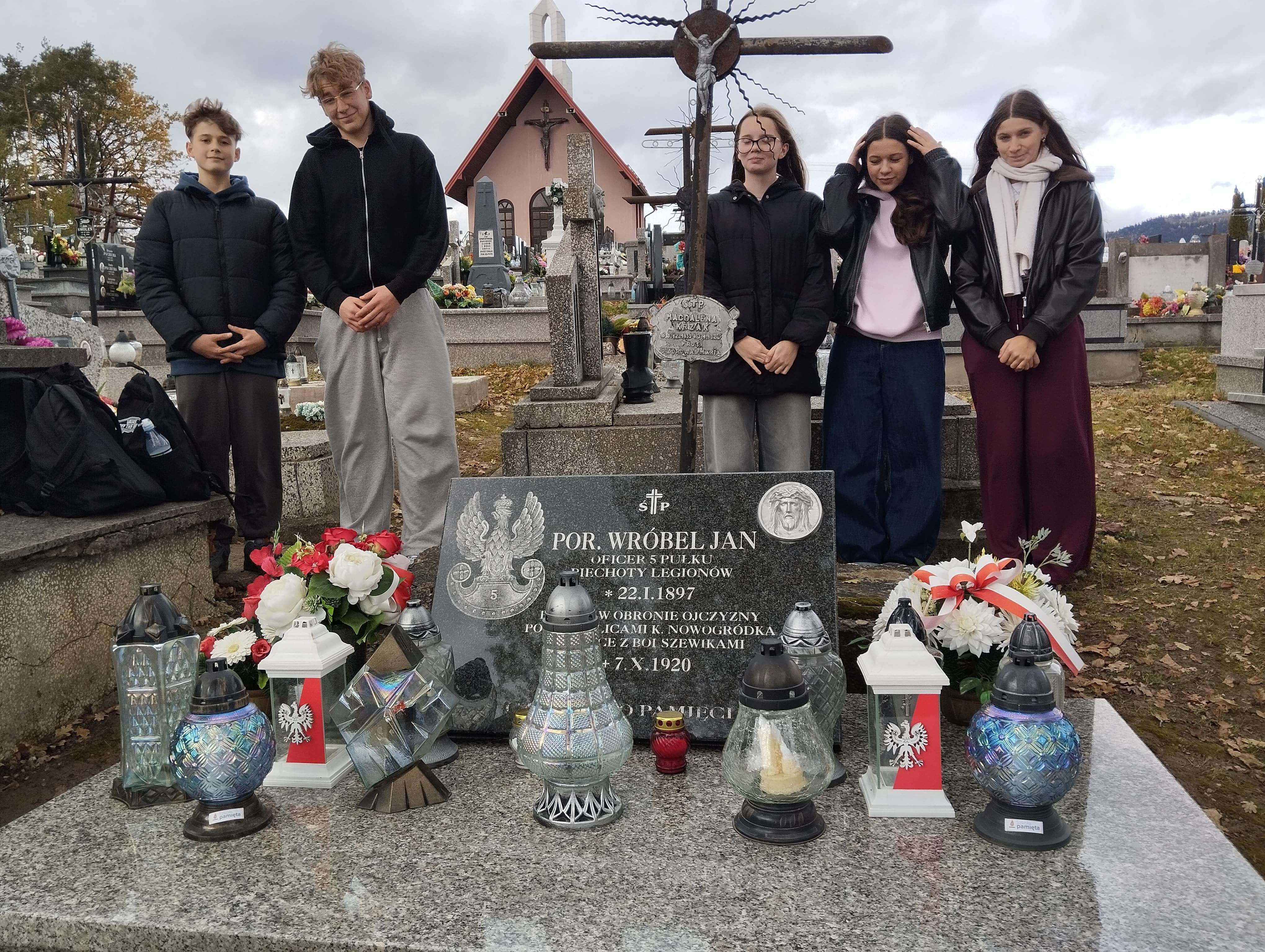 Uczniowie naszej szkoły wraz z wychowawcami, jak co roku przed 1. listopada, uporządkowali w tym czasie groby byłych nauczycieli i zapalili znicze w ramach akcji „Szkoła pamięta”. Szkolni wolontariusze zadbali także o grób porucznika Jana Wróbla, a11.listopada spotkali się przy jego mogile wraz z dyrekcją szkoły, mieszkańcami oraz przedstawicielami władz samorządowych. W ten sposób oddali hołd poległemu i wszystkim, którzy zginęli, walcząc o wolną Polskę.