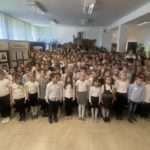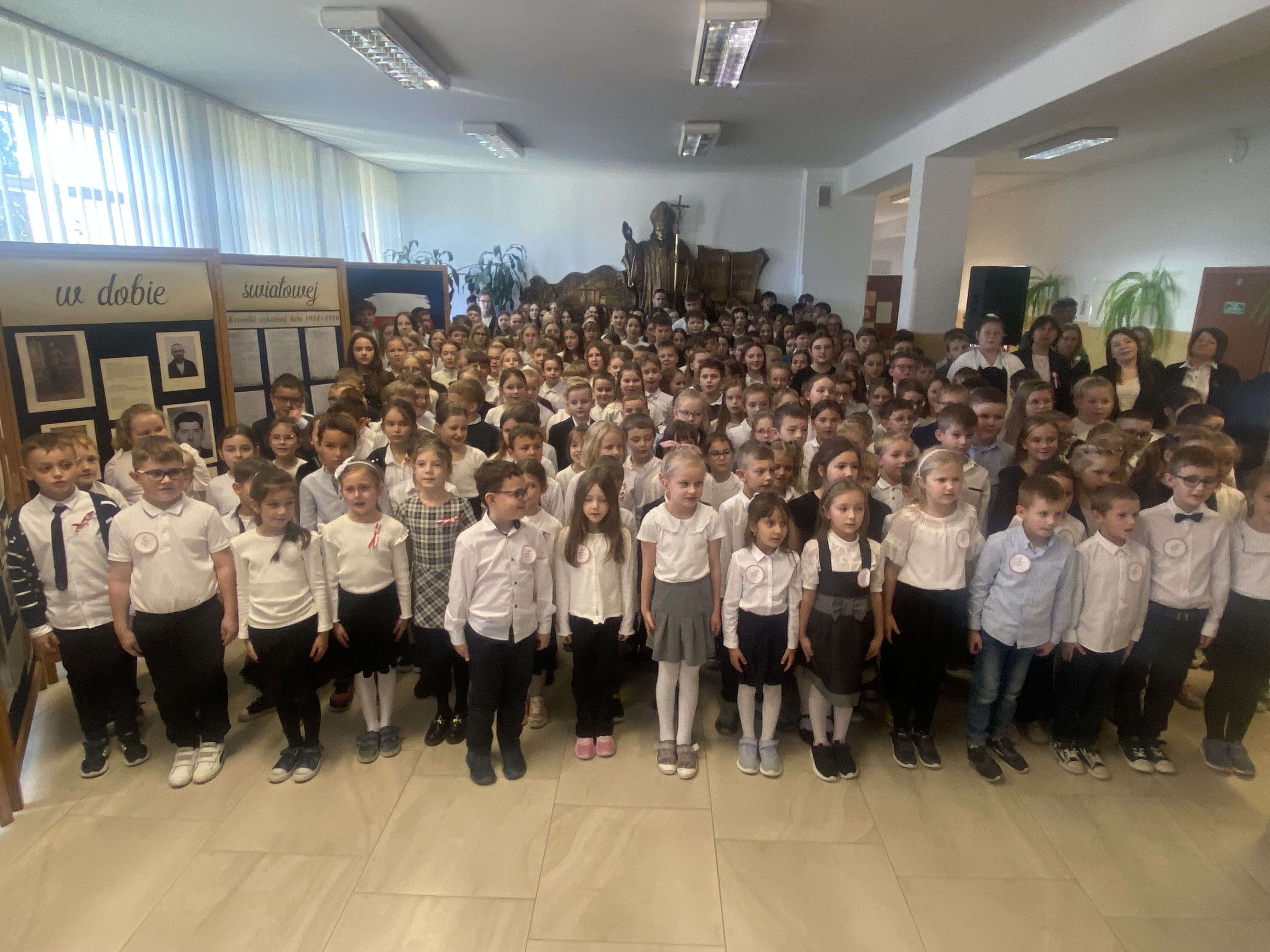Dnia 7 listopada 2025 roku nasza szkoła przystąpiła do akcji „Szkoła do hymnu”, której celem jest uczczenie Narodowego Święta Niepodległości. O godzinie 11.11 uczniowie wszystkich klas wraz z nauczycielami zebrali się na głównym holu szkoły. Wspólnie odśpiewali hymn Polski – „Mazurek Dąbrowskiego”. Dzięki tej akcji mogliśmy wzmocnić poczucie wspólnoty wśród uczniów, nauczycieli oraz wszystkich Polaków. Akcja „Szkoła do hymnu” jest doskonałą okazją do wspólnego świętowania i wyrażenia miłości do Ojczyzny.