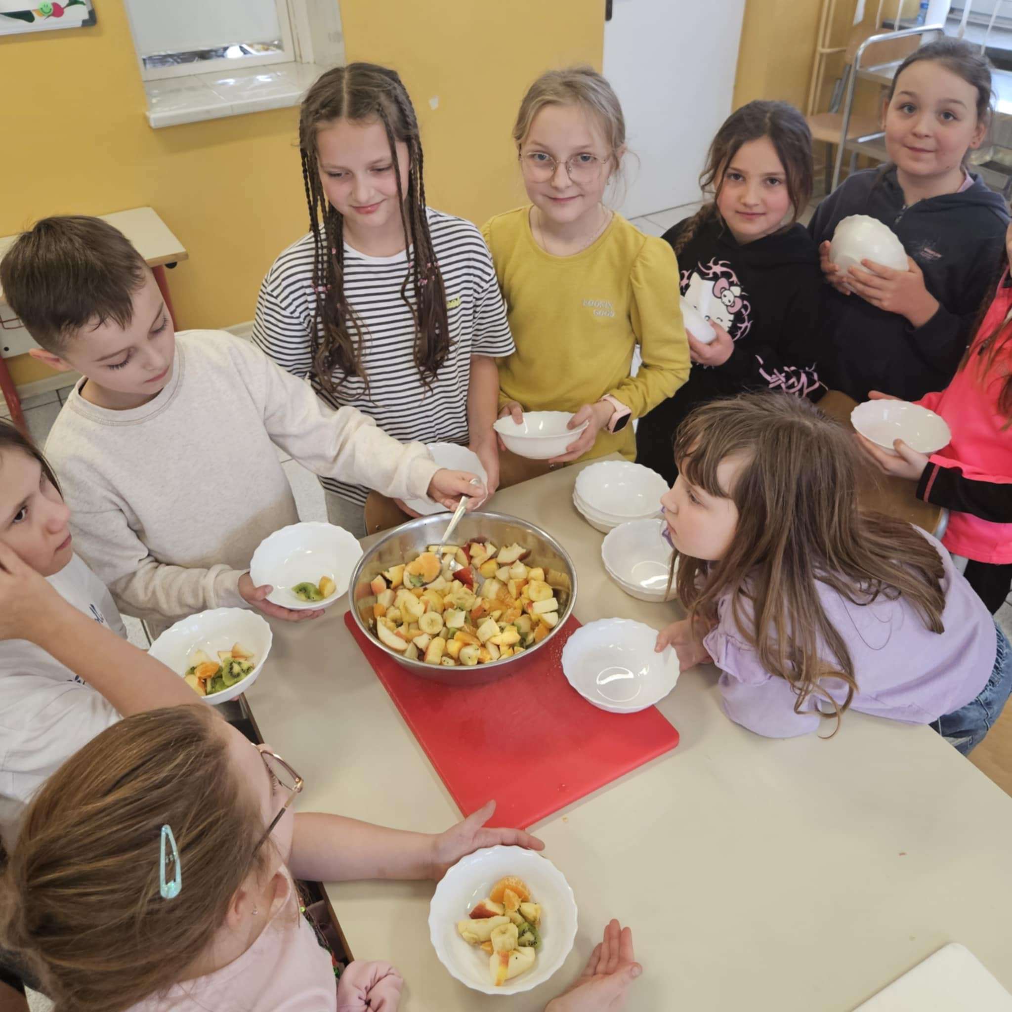 W świetlicy szkolnej realizowany jest projekt edukacyjny pt. „W zdrowym ciele zdrowy duch”, w którym uczestniczą uczniowie klas I–III. Celem projektu jest kształtowanie prawidłowych nawyków żywieniowych, promowanie zdrowego stylu życia oraz uświadamianie dzieciom, jak ważne dla zdrowia są odpowiednie odżywianie i aktywność fizyczna. W ramach projektu dzieci wzięły udział w zajęciach praktycznych, podczas których samodzielnie przygotowywały sałatkę owocową. Uczniowie poznali różne gatunki owoców, ich wartości odżywcze oraz zasady higieny i bezpieczeństwa podczas przygotowywania posiłków. Wspólne gotowanie było dla dzieci nie tylko nauką, ale także świetną zabawą i okazją do współpracy w grupie.